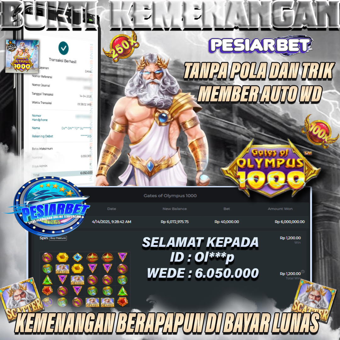 PESIARBET Bukti Kemenangan SLOT GATES OF OLYMPUS 1000